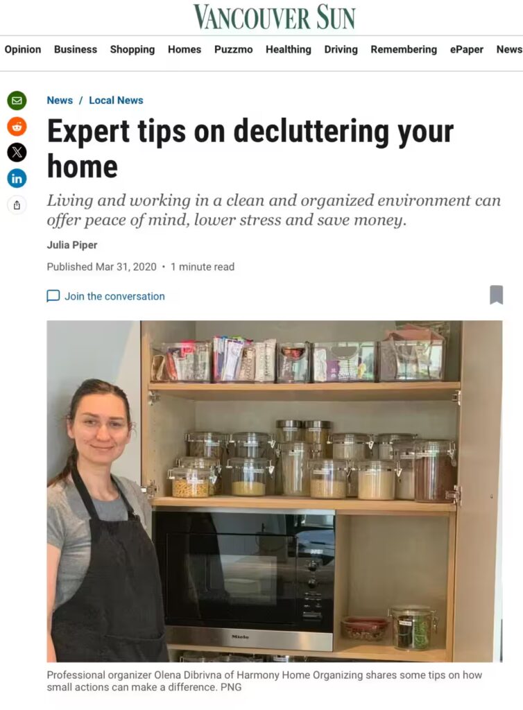 My name is Olena Zaldivar, and I am the owner of Harmony Home Organizing. I am a trained professional organizer based in Vancouver and a member of POC.